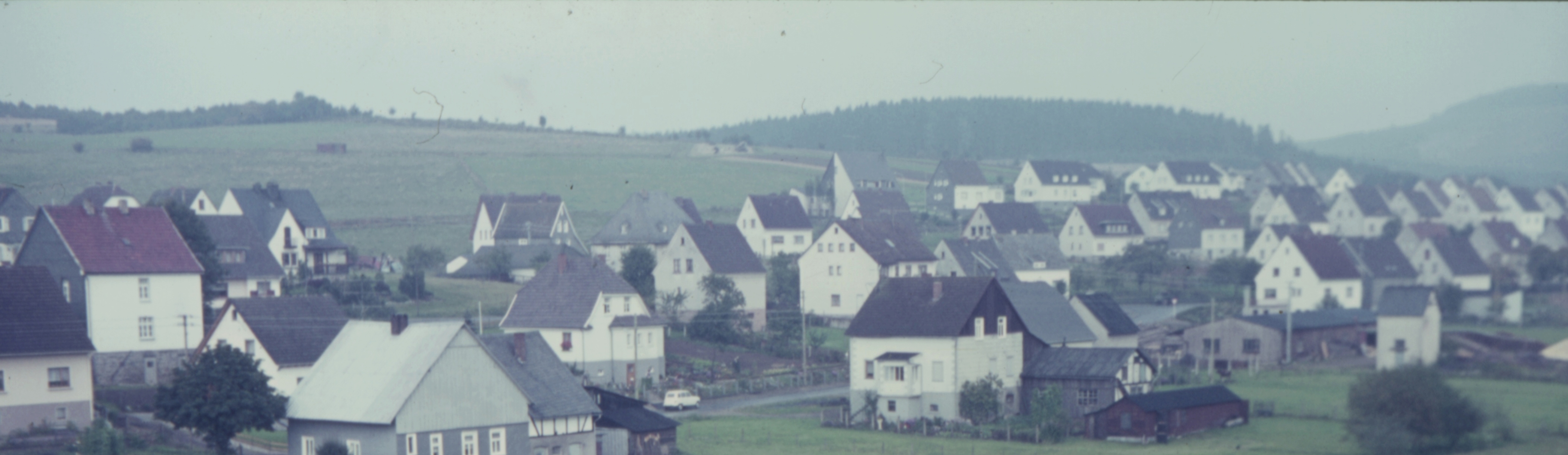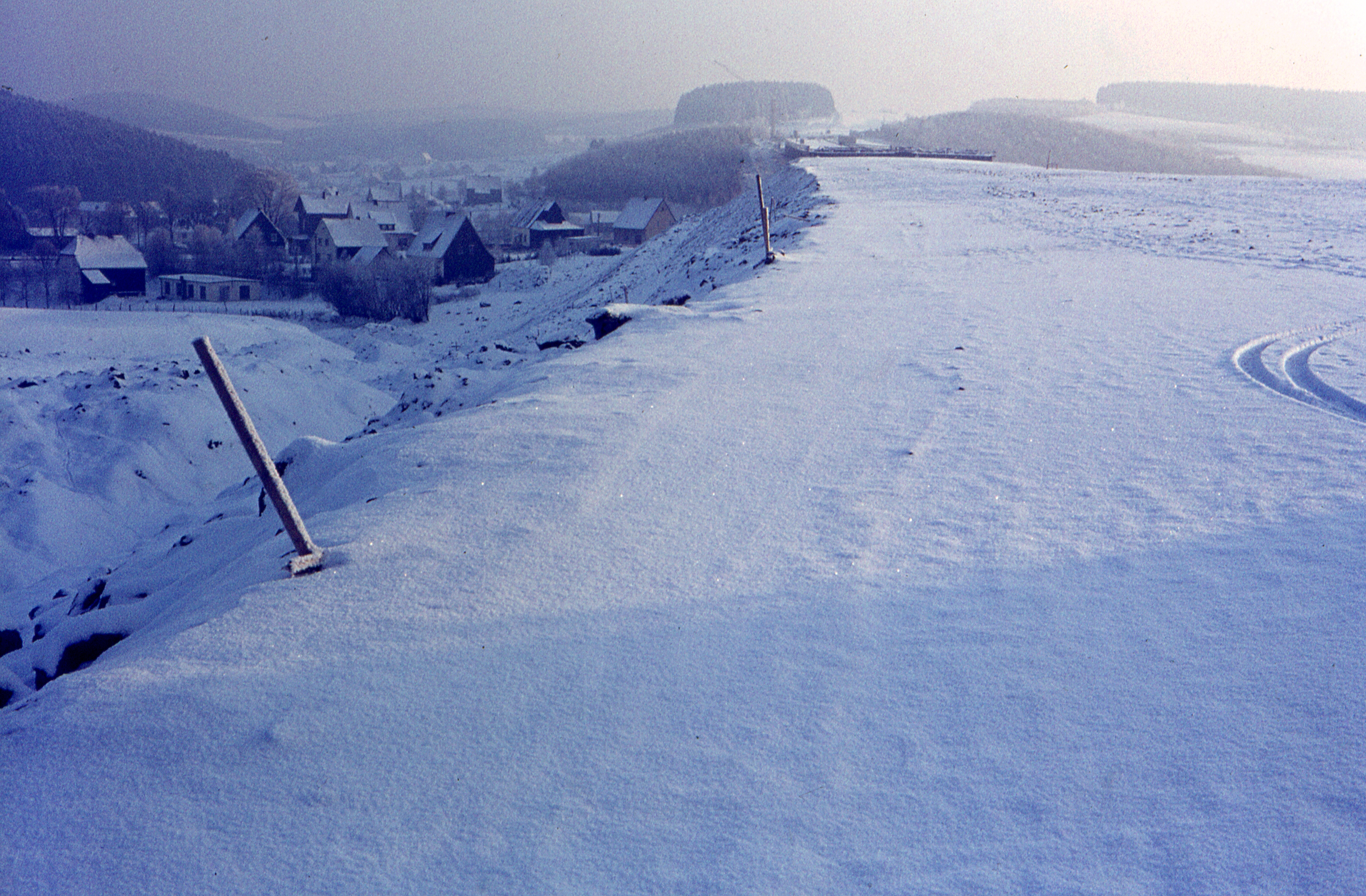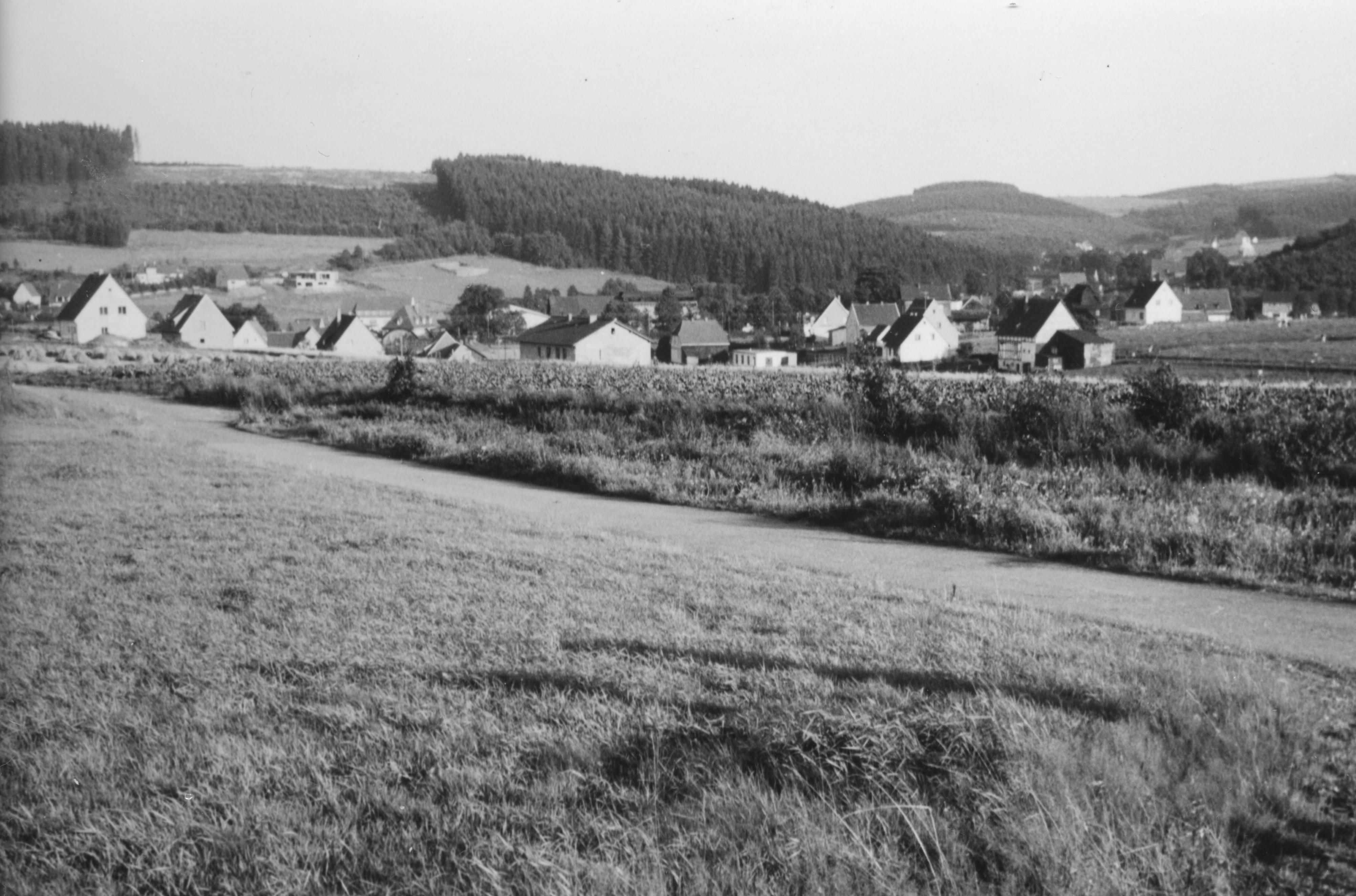 Wörmicke 1962; hier verläuft heute die Autobahn A45; das erste Haus vorne (von Johannes Zimmermann) und die beiden Häuser weiter rechts hinten wurden 1968 wegen der A45 abgerissen
