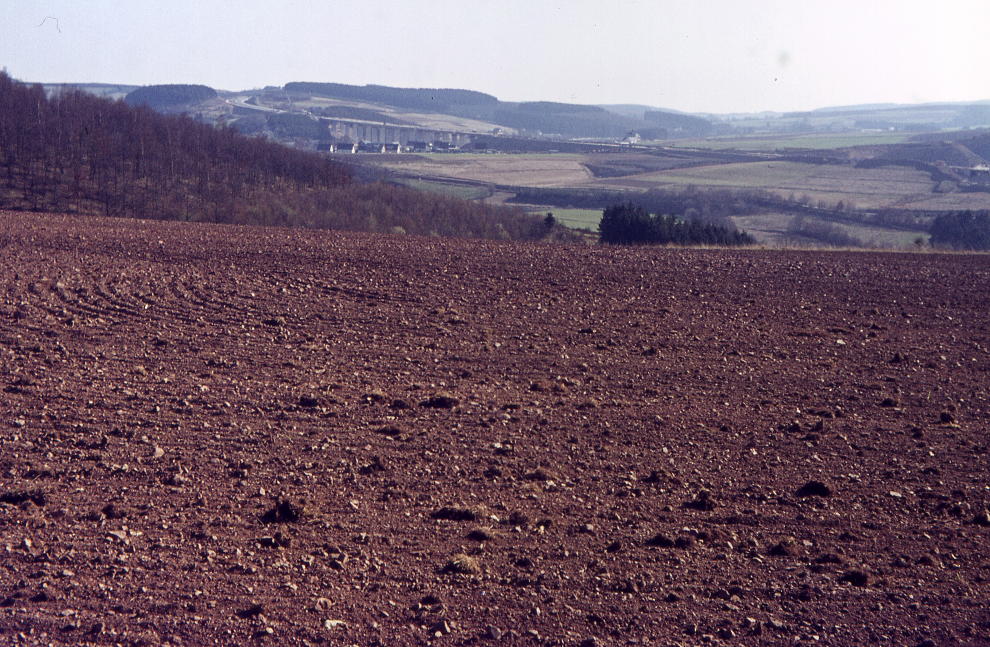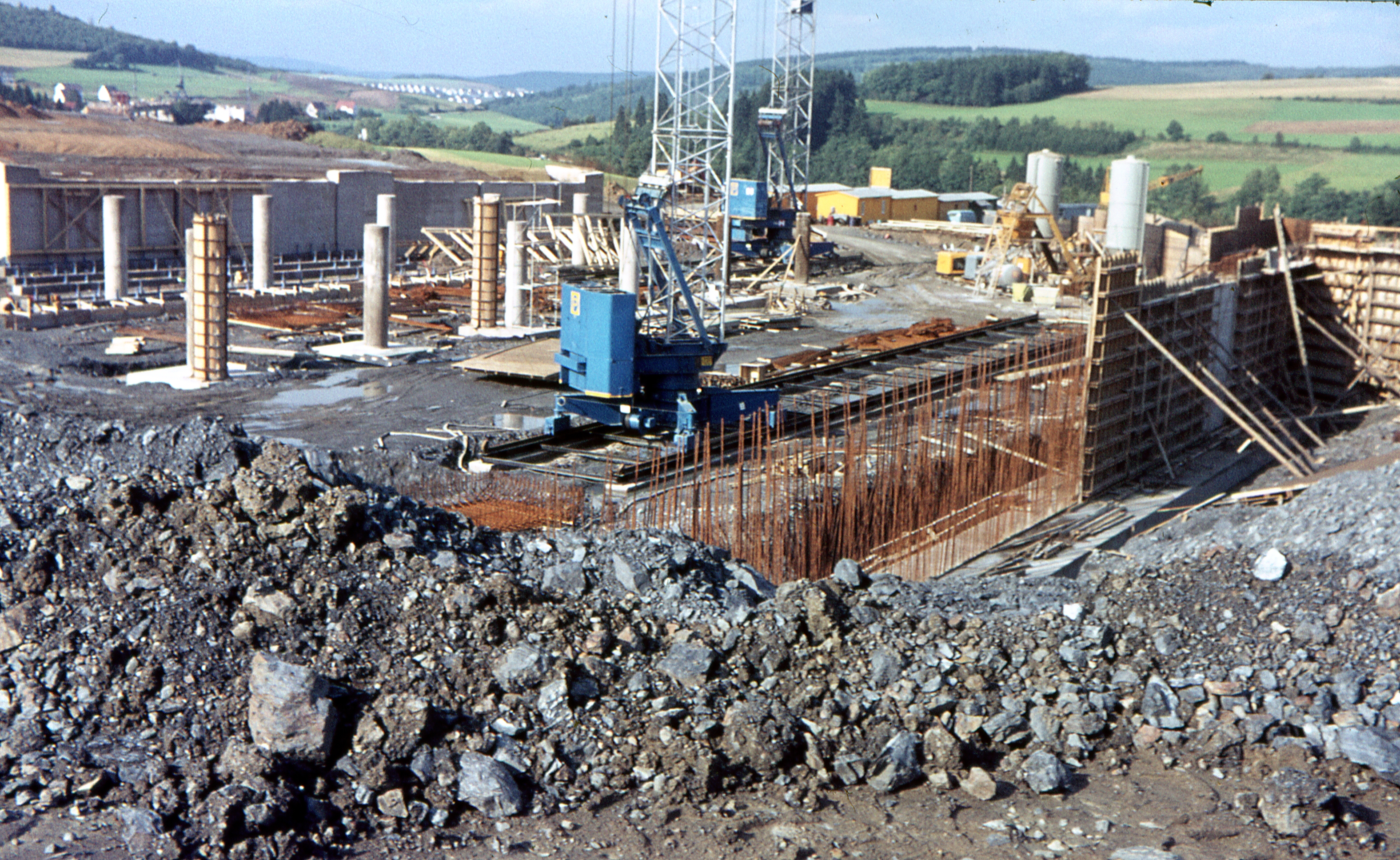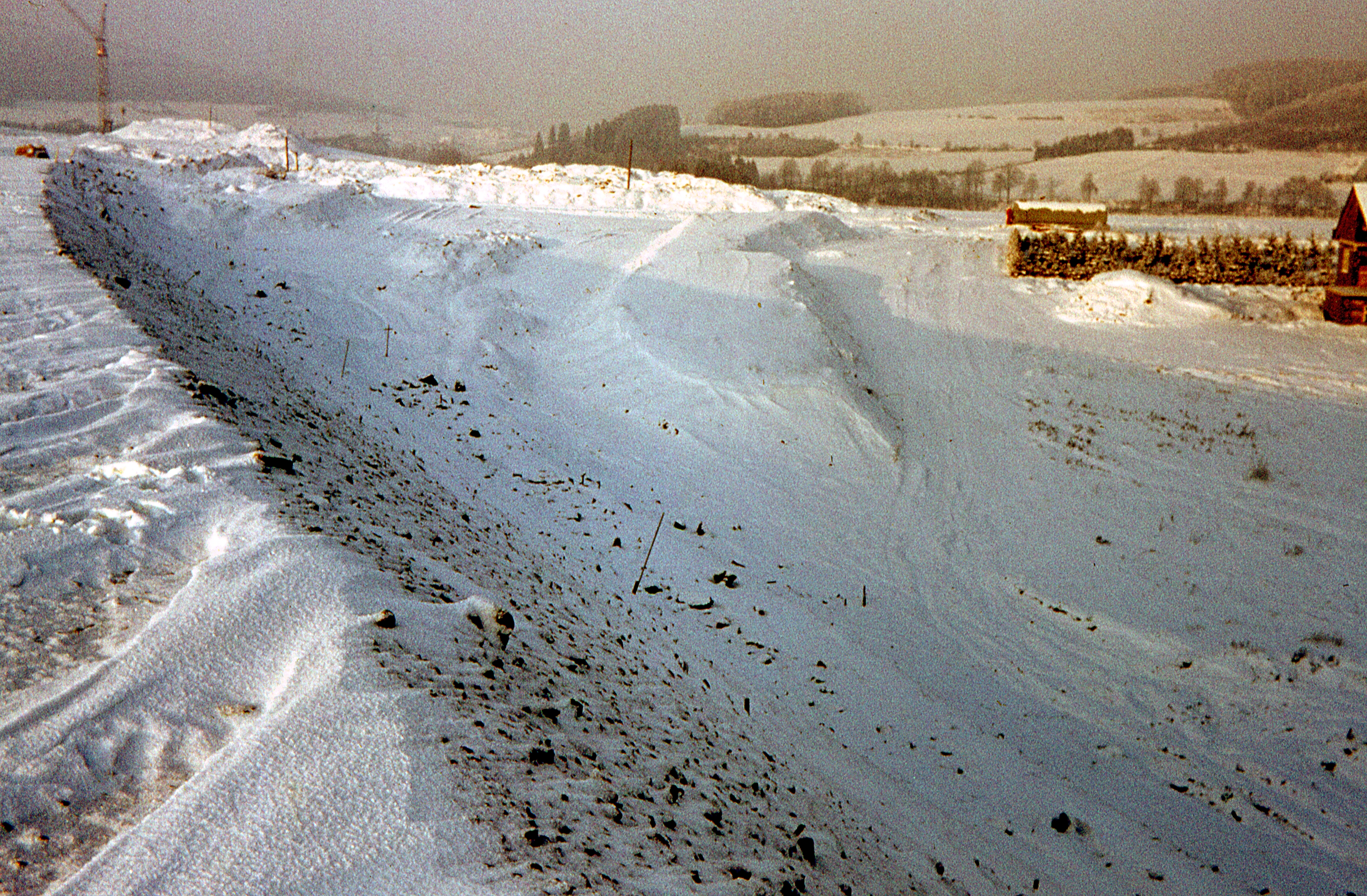 Blick auf die Talbrücke der A45 in Gerlingen Mitte 1970er; Standort ist das Gewerbegebiet von Dahl;